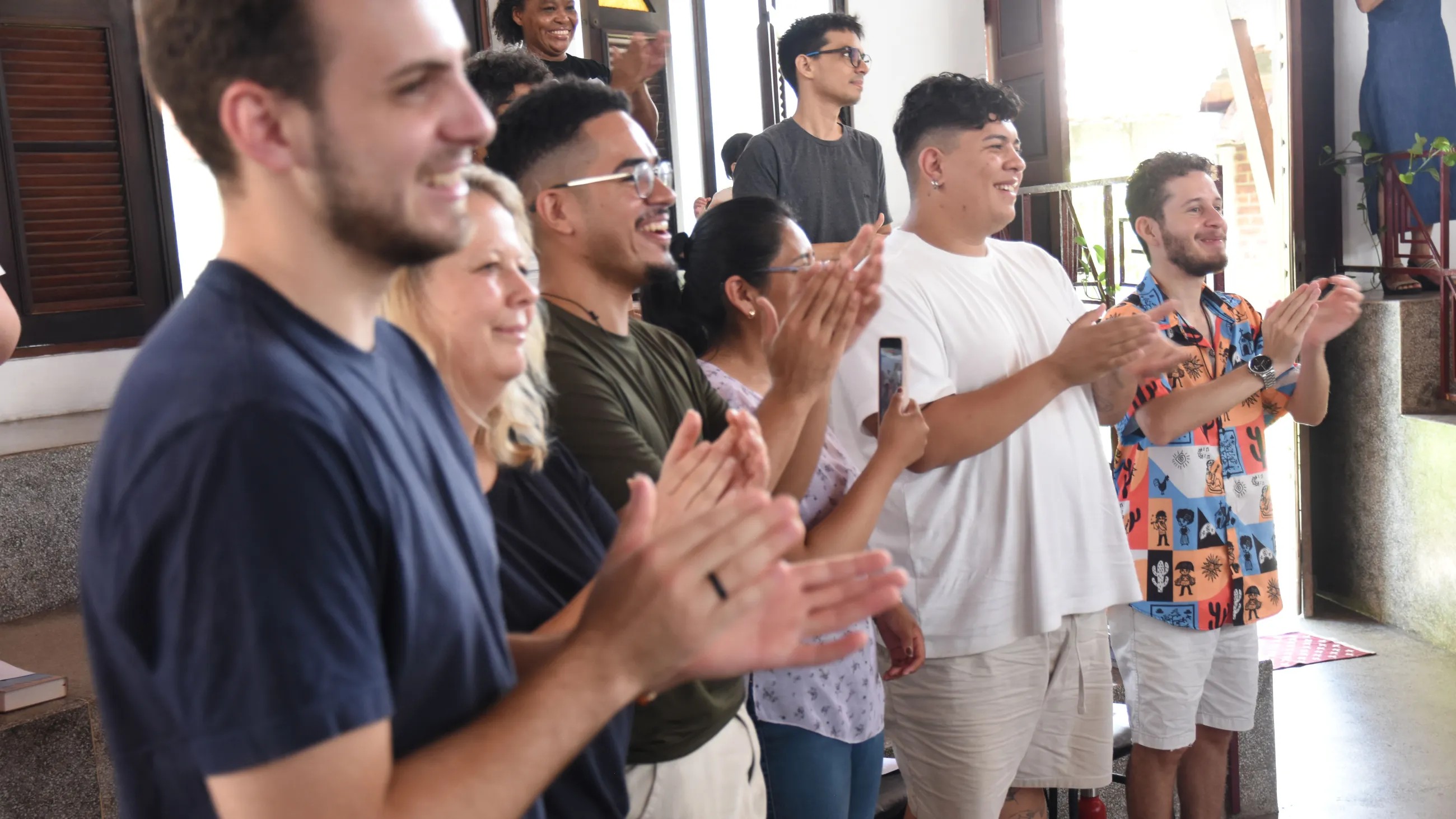 LWB-Jugenddelegierte und andere COP30-Teilnehmende aus verschiedenen Teilen der Welt feiern mit der IECLB-Gemeinde in Belém/Brasilien den Sonntagsgottesdienst. Foto: LWB/E. Albrecht