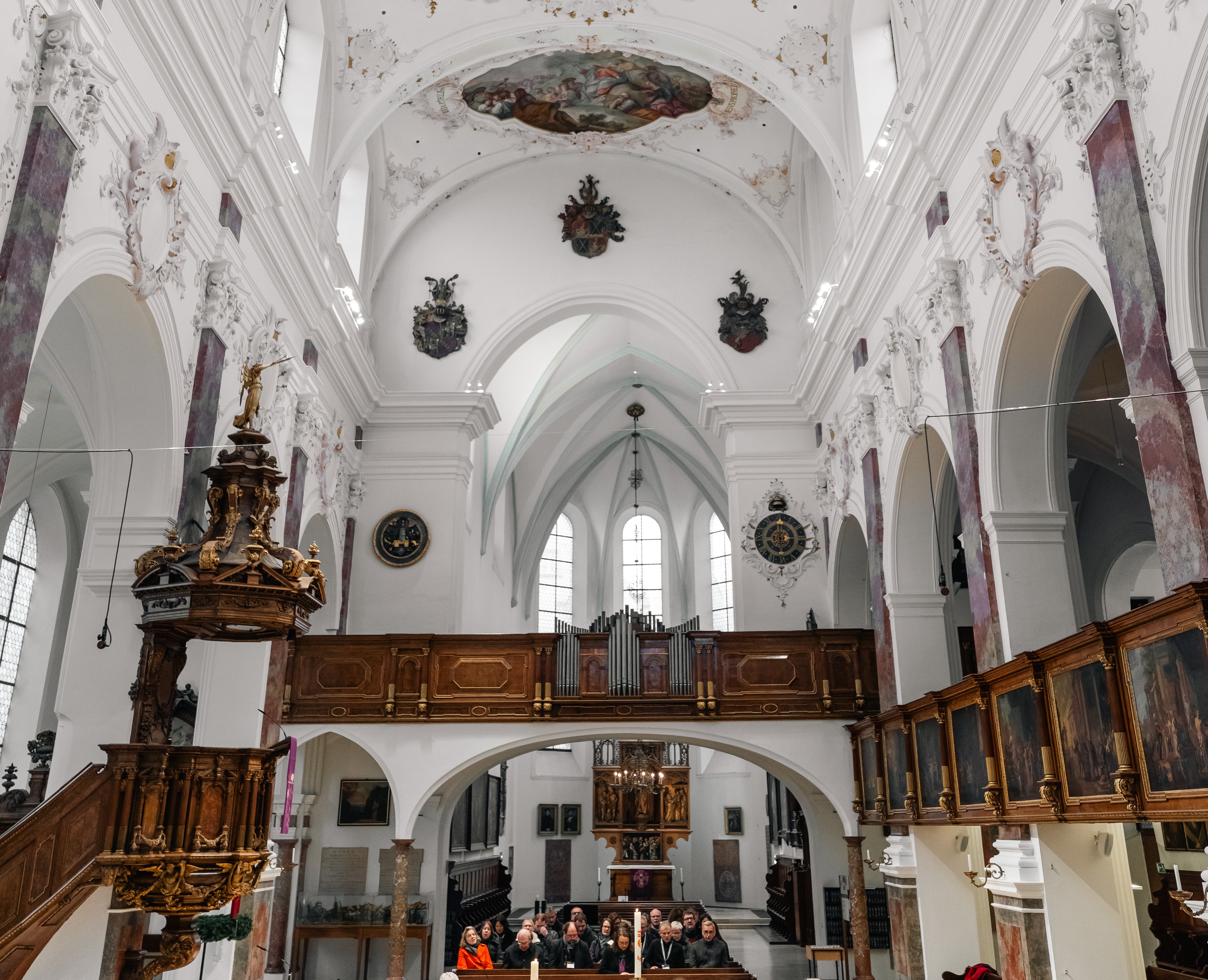 Augsburg entdecken stand am zweiten Vormittag auf dem Programm. Der Tag startete mit einer Morgenandacht in St. Anna, wo 1999 die Gemeinsame Erklärung zur Rechtfertigungslehre unterzeichnet wurde, und ging weiter mit einer Stadtführung durch Augsburg.