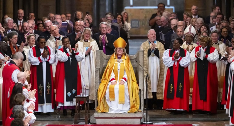Unter den Insignien, die die neue Erzbischöfin für den Gottesdienst zu ihrer offiziellen Amtseinführung wählte, war ein Bischofsring, den Papst Paul VI einem ihrer Amtsvorgänger 1966 als Zeichen der wachsenden Freundschaft zwischen der Anglikanischen Kirchengemeinschaft und der Römisch-katholischen Kirche geschenkt hatte. Der Gottesdienst war von historisch wichtigen liturgischen Elementen und historisch wichtiger Symbolik geprägt, aber es gab auch zeitgenössische Musik, Gebete und Lesungen in Urdu, Kisuahili, Bemba und auf Spanisch, um die Menschen in einer kleinen Auswahl der vielen verschiedenen Glaubenstraditionen abzubilden, aus denen sich die weltweite Anglikanische Kirchengemeinschaft heute zusammensetzt.