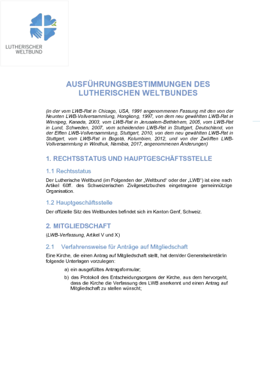 Die Ausführungsbestimmungen des LWB in anderen Sprachen finden Sie hier: https://www.lutheranworld.org/content/resource-lwf-constitution-and-bylaws