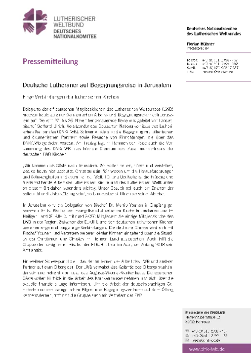 Deutsche Lutheraner auf Begegnungsreise nach Jerusalem
