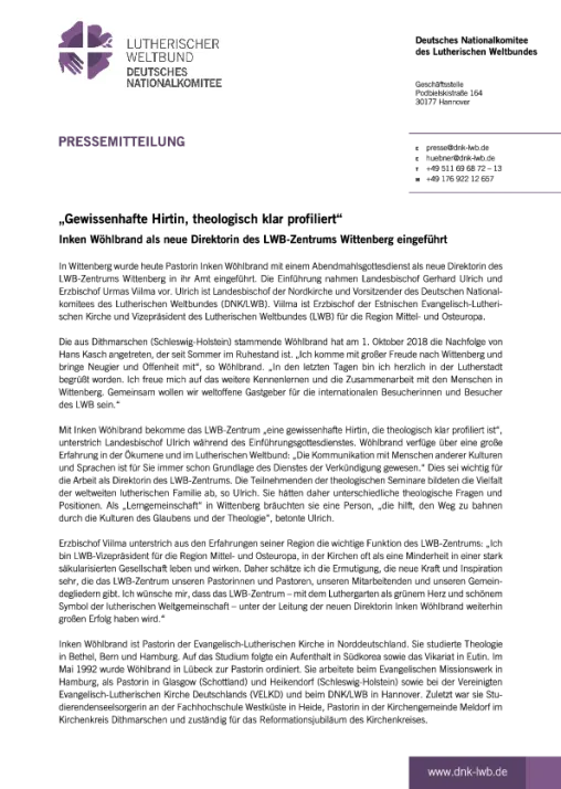 Inken Wöhlbrand als neue Direktorin des LWB-Zentrums Wittenberg eingeführt