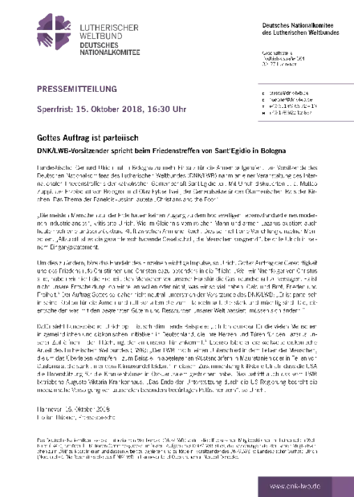 DNK/LWB-Vorsitzender spricht beim Friedenstreffen von Sant’Egidio in Bologna