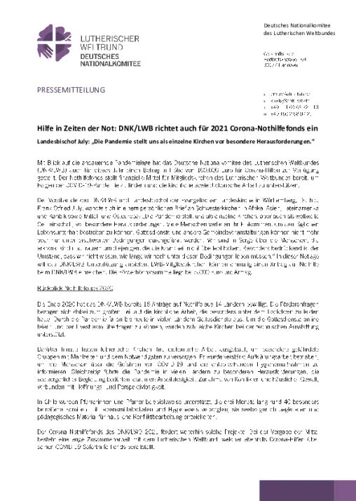 Landesbischof July: „Die Pandemie stellt uns als einzelne Kirchen vor besondere Herausforderungen.“
