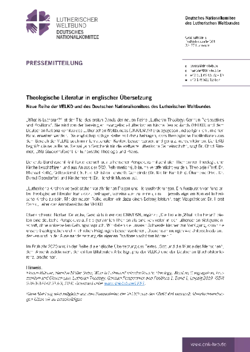 Neue Reihe von Veröffentlichungen der VELKD und des Deutschen Nationalkomitees des Lutherischen Weltbundes