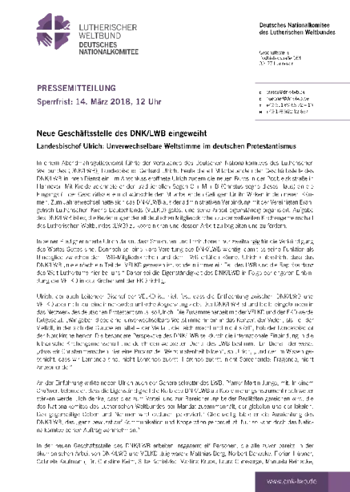 Neue Geschäftsstelle des DNK/LWB eingeweiht