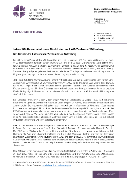 Inken Wöhlbrand wird neue Direktorin des LWB-Zentrums Wittenberg
