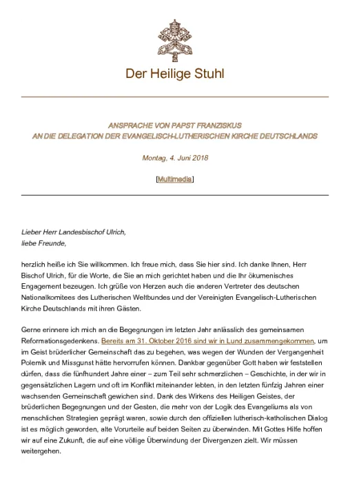 Ansprache von Papst Franziskus an die Delegation des DNK/LWB