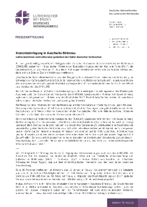 Lutheranerinnen und Lutheraner gedenken der Opfer deutscher Verbrechen