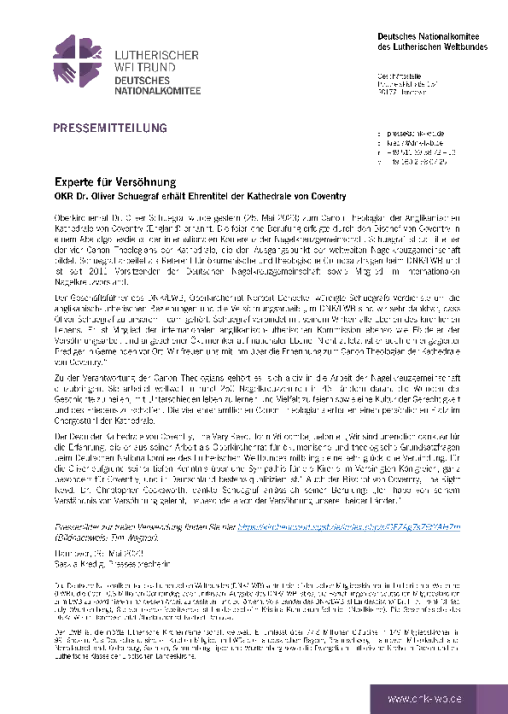 OKR Dr. Oliver Schuegraf erhält Ehrentitel der Kathedrale von Coventry