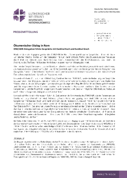DNK/LWB-Delegation führte Gespräche mit Kardinal Koch und Kardinal Grech
