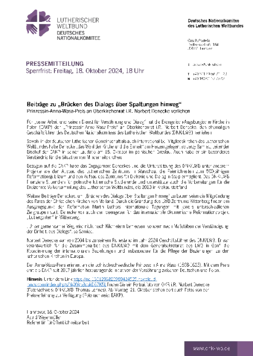 Prinzessin-Anna-Wasa-Preis an Oberkirchenrat i.R. Norbert Denecke verliehen