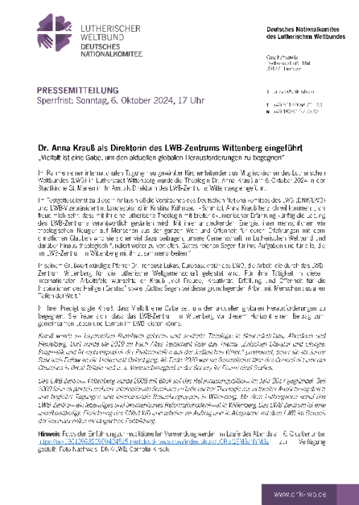 Dr. Anna Krauß als Direktorin des LWB-Zentrums Wittenberg eingeführt