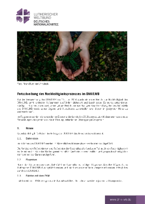 Bericht zur nachhaltigen Bewirtschaftung der Geschäftsstelle des DNK/LWB sowie seiner Organe und Ausschüsse