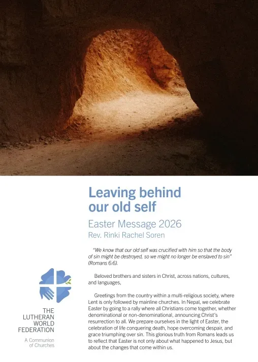 Unser altes Selbst hinter uns lassen Osterbotschaft 2026 Pfarrerin Rinki Rachel Soren Wir wissen ja, dass unser alter Mensch mit ihm gekreuzigt ist, damit der Leib der Sünde vernichtet werde, sodass wir hinfort der Sünde nicht dienen” (Römer 6,6).