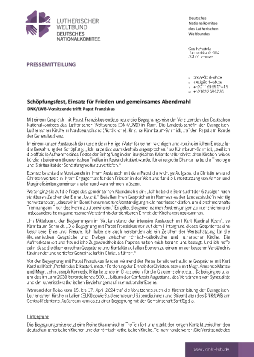 DNK/LWB-Vorsitzende trifft Papst Franziskus