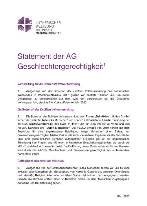 Ausgehend von der Botschaft der Zwölften Vollversammlung des Lutherischen Weltbundes in Windhoek/Namibia 2017 greifen wir zentrale Themen auf, um deren Dringlichkeit zu unterstreichen auf dem Weg der Vorbereitung auf die Dreizehnte Vollversammlung des LWB in Krakau/Polen im Jahr 2023.